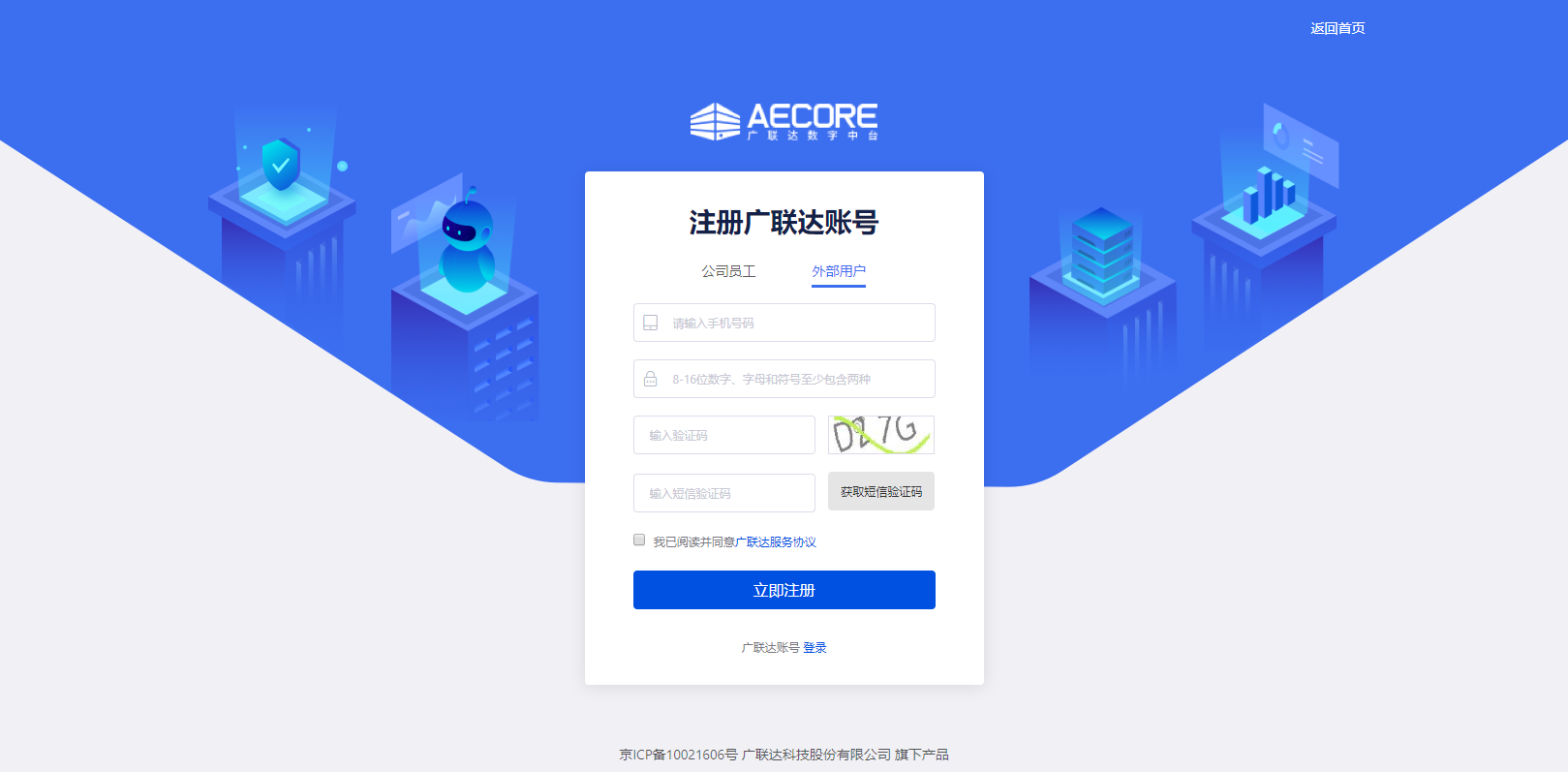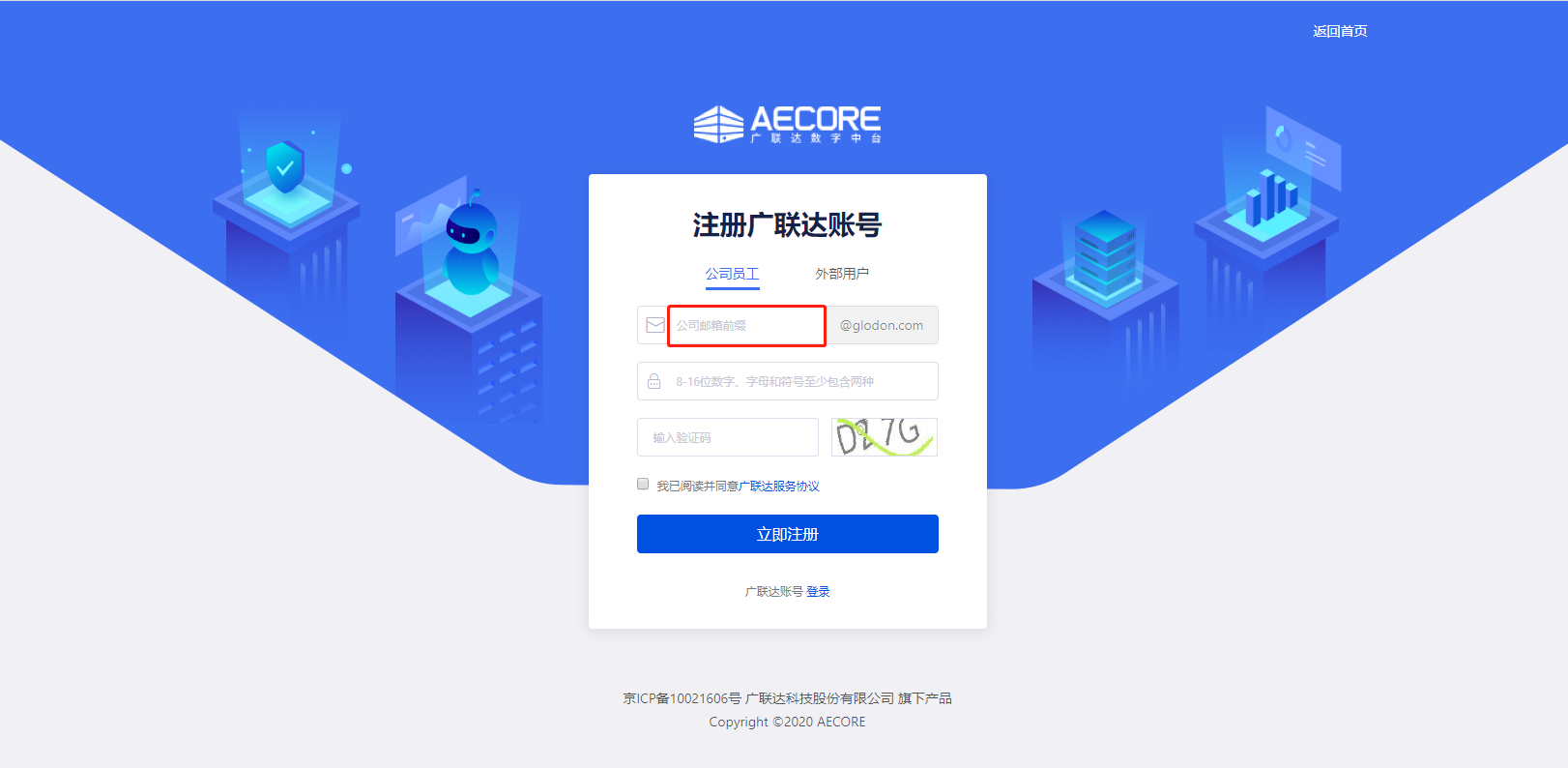 1、AECORE既面向内部开发者又面向行业开发者开放,公司内部员工请统一使用公司邮箱注册,外部开发者使用手机号注册