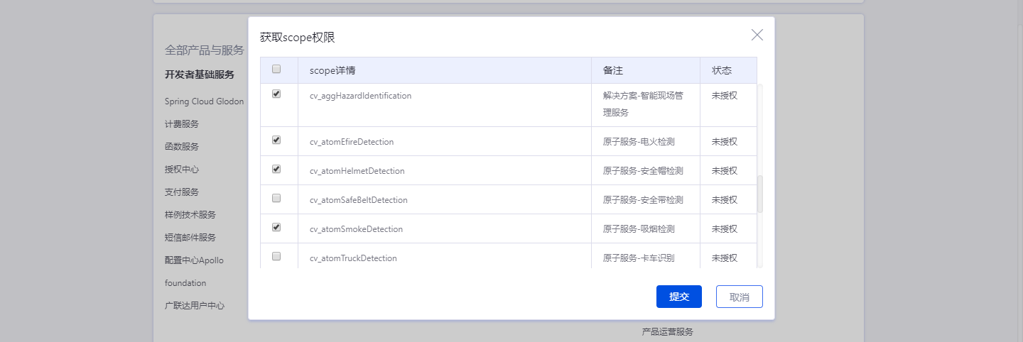 应用创建后选择并开通本服务,申请应用scope